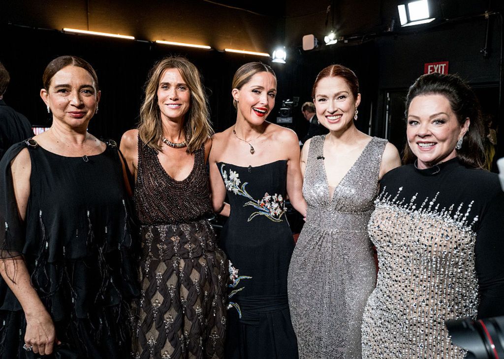 HOLLYWOOD, CALIFORNIA – MARCH 15: Maya Rudolph, Kristen Wiig, Rose Byrne, Ellie Kemper and Melissa McCarthy attend the 98th Annual Oscars at Dolby Theatre on March 15, 2026 in Hollywood, California. (Photo by John Shearer/98th Oscars/Getty Images The Academy via Getty Images)