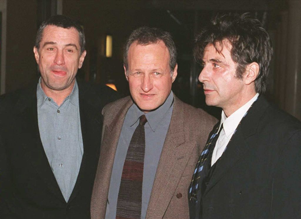 (FILES) In this file photo taken on December 5, 1995 US actors Robert De Niro (L) and Al Pacino (R) pose with director Michael Mann as they arrive for the world premiere of the film "Heat" in Burbank, California. – Michael Mann wants to make a big-screen sequel to "Heat," the iconic movie that brought Al Pacino and Robert De Niro together for the first time, the director has told AFP. The 1995 hit film starring Pacino as a Los Angeles detective pursuing De Niro's heist gang across the city is widely considered a classic crime thriller. Mann announced in 2016 that a novel inspired by "Heat" would be published by his own Harper Collins imprint, but shared fresh details of the book with AFP. "The novel is about two-thirds written, and it's the prequel to 'Heat' and its the sequel to 'Heat' rolled together," said Mann. "So it's everything before the movie and everything after the movie." (Photo by VINCE BUCCI / AFP) (Photo credit should read VINCE BUCCI/AFP via Getty Images)