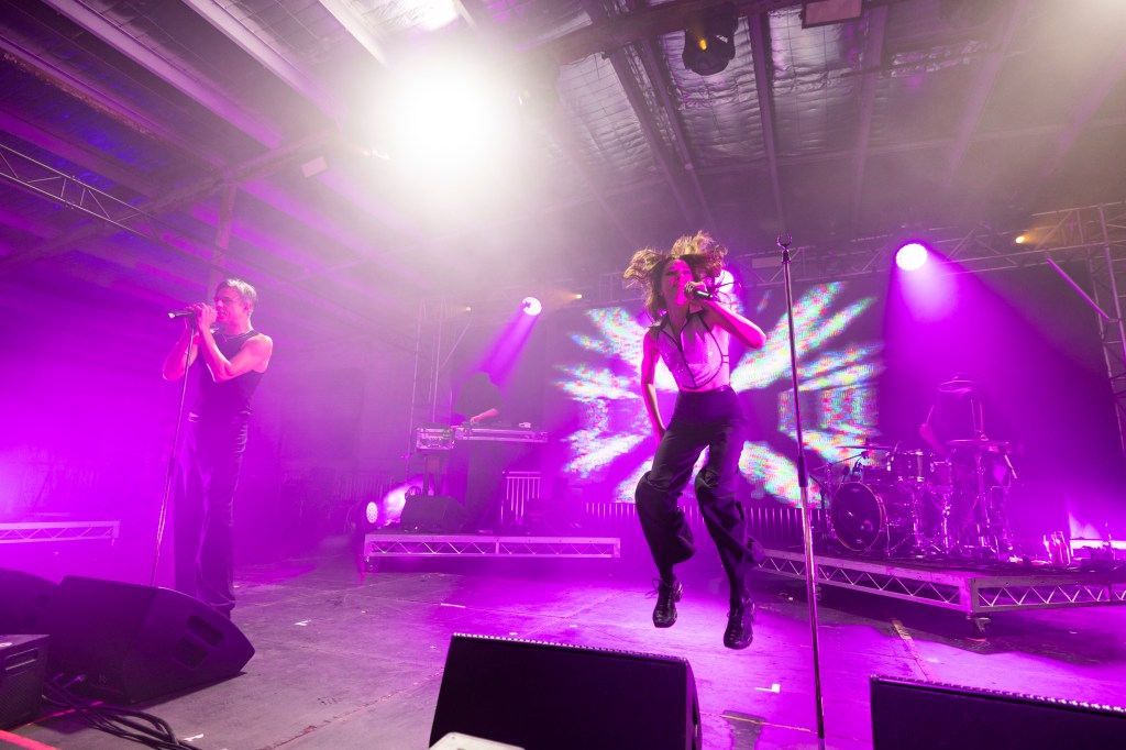 Confidence Man’s live act features loads of fun and energetic choreography from Janet (a.k.a. Grace Stephenson) and her bandmate/”brother” Sugar Bones (Aidan Moore), while a veiled backing band of DJ Reggie Goodchild (Lewis Stephenson) and drummer Clarence McGuffie (identifity unknown) supports them. However, with Janet injured, that meant they would have to change it up for the Austin, Texas, performance.