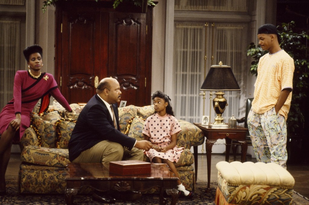 THE FRESH PRINCE OF BEL AIR — "Someday Your Prince Will Be in Effect: Part 2" — Aired 10/29/90 — Pictured: (back, l-r) Producer Benny Medina, Joseph Marcell as Geoffrey, Alfonso Ribeiro as Carlton Banks, James Avery as Philip Banks, Tyler Collins as Cindy, Kadeem Hardison as Himself, Will Smith as William 'Will' Smith, Quincy Jones as Himself, Al B. Sure as Himself, (front, l-r) Tatyana Ali as Ashley Banks, Janet Hubert-Whitten as Vivian Banks, Karyn Parsons as Hilary Banks — Photo by: NBCU Photo Bank