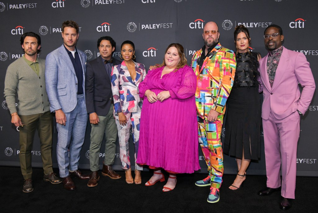 HOLLYWOOD, CALIFORNIA – APRIL 02: (L-R) Milo Ventimiglia, Justin Hartley, Jon Huertas, Susan Kelechi Watson, Chrissy Metz, Chris Sullivan, Mandy Moore, and Sterling K. Brown attend the 39th annual PaleyFest LA – "This Is Us" at Dolby Theatre on April 02, 2022 in Hollywood, California. (Photo by Rodin Eckenroth/FilmMagic)
