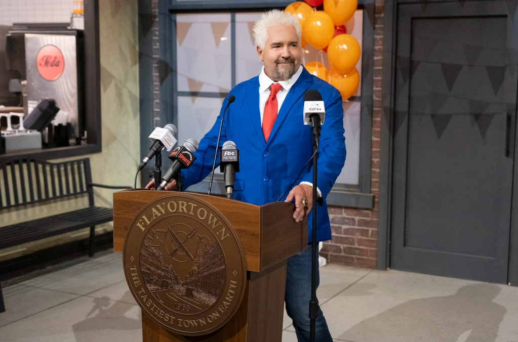 In every episode of Flavortown Food Fight, three chefs will test their culinary skills in Flavortown, competing in street food carts, neighborhood spots, fast casual restaurants and fine dining establishments with names inspired by Fieri’s life.