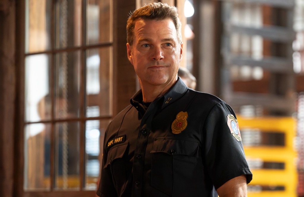 As first revealed in the trailer, Chris O’Donnell’s Captain Don Hart secretly fathered a child, and he only just now told his son, Ryan (Michael Provost), when they randomly ran into said secret child, Blue (Hunter McVey), during a call. In the episode, the news came as a shock to Ryan, understandably, and Don explained that there was a brief time when he and his wife, Blythe (Jessica Capshaw), Ryan’s mother, were separated, but Ryan didn’t know.