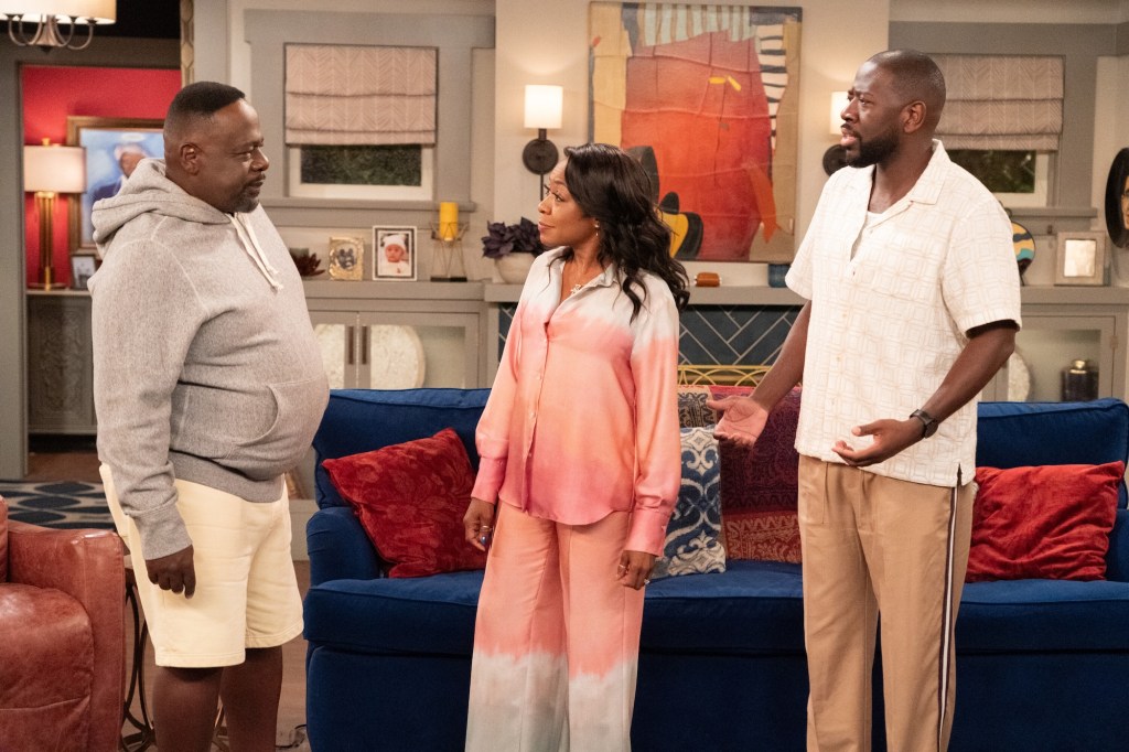 Pictured: Cedric The Entertainer as Calvin, Tichina Arnold as Tina and Sheaun McKinney as Malcolm. Photo: Monty Brinton/CBS