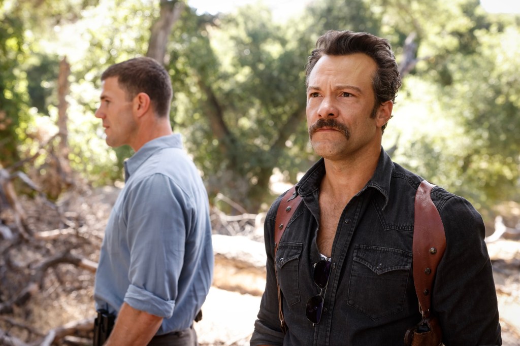 Pictured (L-R): Austin Stowell as Leroy Jethro Gibbs and Kyle Schmid as Mike Franks. Photo: Sonja Flemming/CBS